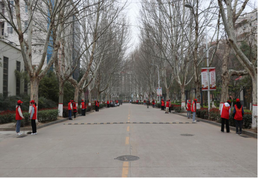 同学们提着桶、拿着抹布,来到校园道路两侧,大家通过协商区域分工、人员分工,迅速投入到位。
