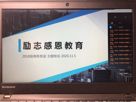 11月5日,商公司员工在钉钉直播间开展了“励志感恩教育”主题班会活动。