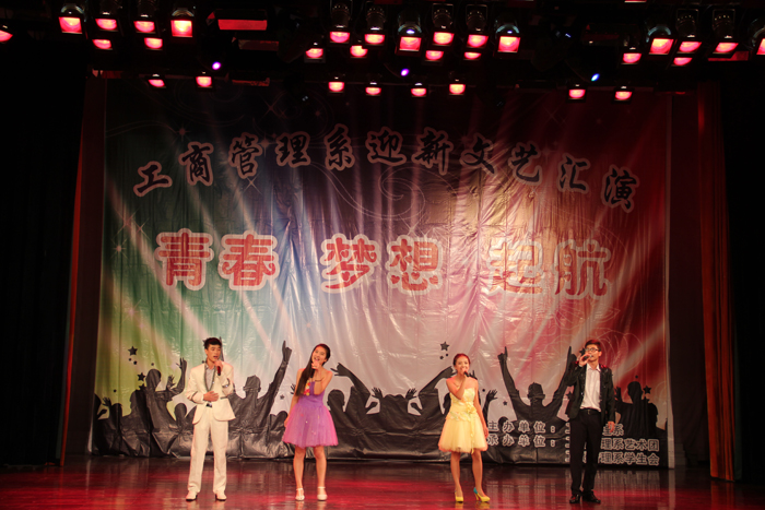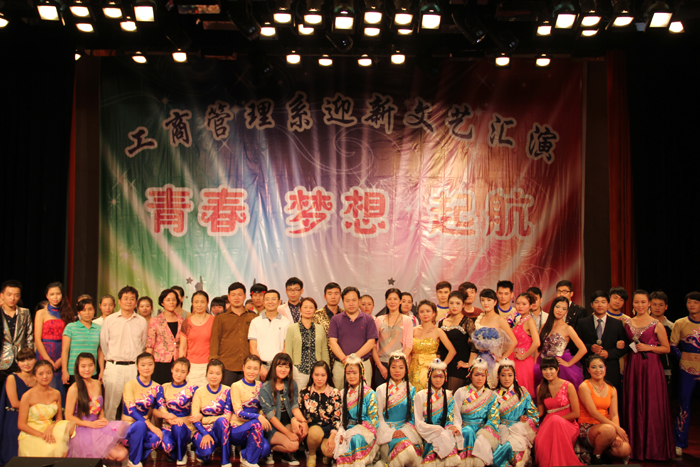 923日晚,工商管理系在公司音乐厅举办以“青春、梦想、起航”为主题的2014年迎新文艺汇演。副经理占江受邀出席,学工部、院团委、烹饪食品系、汽车工程系、电气工程系、工商管理系、音乐公司等有关单位负责人及全系近700名新生参加。