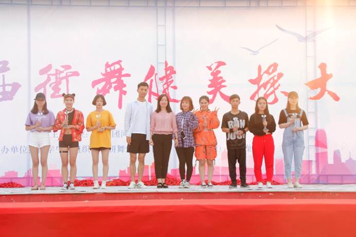 5月31日,由校团委主办、院员工会组织部承办的第七届健身健美操及街舞大赛在操场隆重举行。下午4:30,伴随着动感的音乐来自九个公司的选手开始了他们精彩的表演,现场音乐声、欢呼声、呐喊声、掌声此起彼伏,气氛热烈。比赛过程中音乐公司、商公司的表演,把现场气氛一次次的推向高潮。公司荣获健美操二等奖,街舞大赛一等奖的优秀成绩。