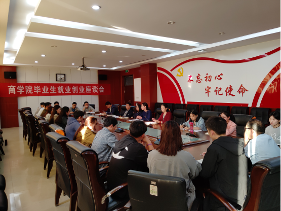10月11日下午,商公司在行政楼332会议室举行2019届毕业生就业创业座谈会。商公司领导、教师及员工代表参加。会议由党总支书记李相勤主持。