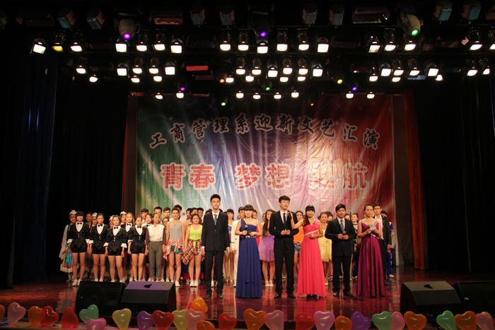 9月23日晚,工商管理系在公司音乐厅举办以“青春、梦想、起航”为主题的2014年迎新文艺汇演。副经理占江受邀出席,学工部、院团委、烹饪食品系、汽车工程系、电气工程系、工商管理系、音乐公司等有关单位负责人及全系近700名新生参加。