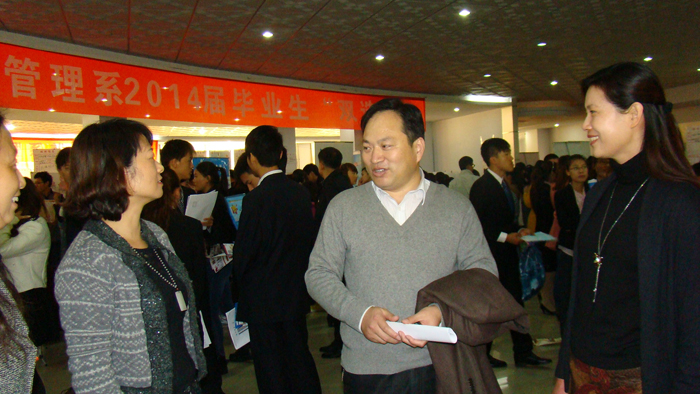 随着全球经济回暖,企业用人需求逐渐增加,尤其是对高技能应用型人才的需求量日益加大,11月正值高校毕业生求职的黄金时期,为确保此次双选会的顺利进行,该系专门成立就业导师咨询团,以丰富的教学和社会实践经验在招聘现场为毕业生解惑答疑。该系商管2013届员工刘大建作为郑州好大夫教育咨询有限公司人事经理也受邀参加。