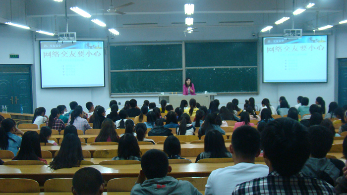 随着工商管理系“安全月”宣传教育活动的持续开展,为进一步增强老员工的安全防范意识和自我保护能力,创建平安校园,10月29日晚上,该系王希、董岳磊、张文龙、王林四位老师分别为共计1000余名新生作了老员工安全教育专题讲座。