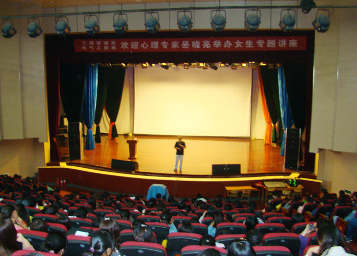近日,工商管理系和电气工程系共同邀请河南省首批国家高级心理咨询师岳晓亮为两系600余名2013级女员工作了“提升女生恋爱能力”的心理专题讲座。两系有关领导和老师参加。讲座由工商管理系主任万久玲主持。