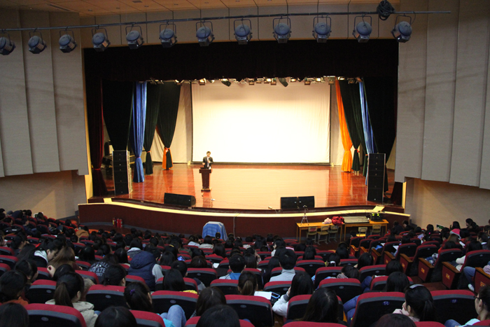 10月31日下午,工商管理系邀请北京大学民营经济研究院咨询中心主任武长江教授作《圆梦人生 圆梦中国——老员工就业创业思想盛宴:人生第一课》专题讲座。该系领导、全体辅导员和近800名毕业生参加。讲座由系党总支书记李相勤主持。