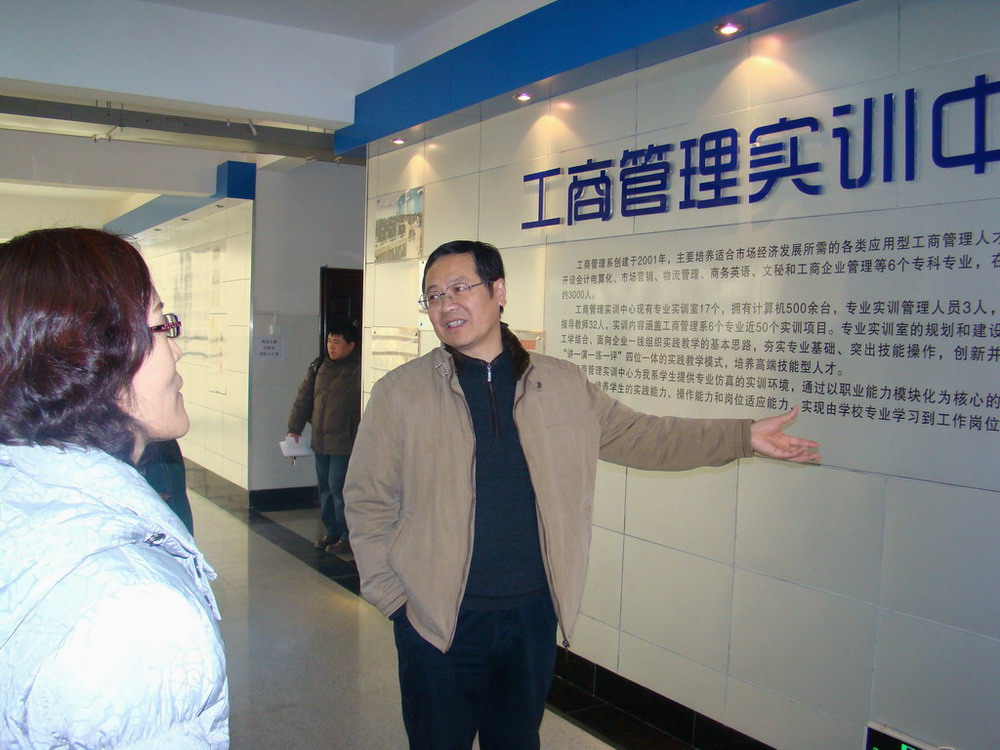 12月11日下午,副经理彭志宏在校产管理处和工商管理系领导的陪同下,深入工商管理系实训中心考察并指导实训室建设工作,并提出了指导性意见和建议。
