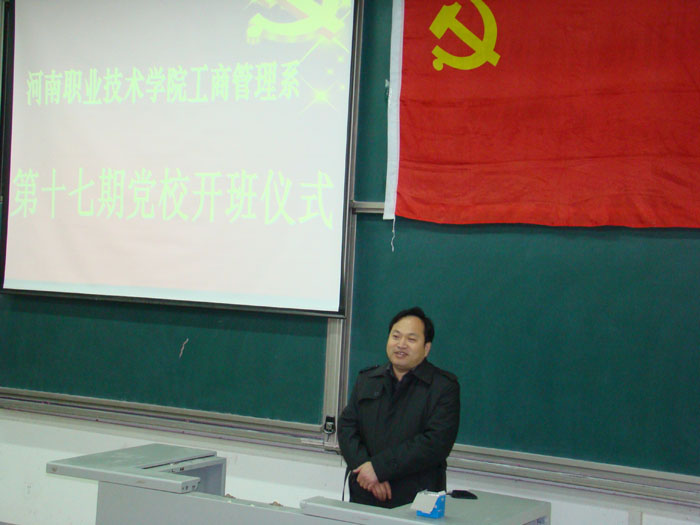 11月29日晚,工商管理系党校第十七期党课开学典礼在电教202教室隆重举行,副经理占江出席并发表重要讲话。