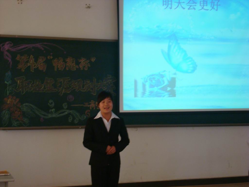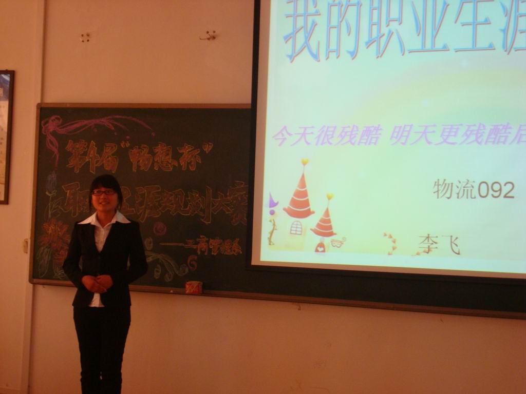本次活动分为筹备、动员和比赛三个阶段,历时一个多月。系主任万久玲、副主任李湘勤、刘冰涛和团总支书记沈莉莉组成活动领导小组,田嘉等十余位教师组成评审团对比赛全程进行指导和点评。在决赛现场,参赛选手热情高涨,挥洒对未来的美好憧憬,运用多媒体动画、文字和肢体语言向大家展现了美好而又很贴近现实的职业生涯规划。温宗和老师点评说:“选手的精彩表演仿佛将大家带进了工作职场,走进了选手的职业生涯!”经过激烈角逐,最终市营092班王倩等八名同学分获冠、亚、季军,并代表该系参加公司举行的职业生涯大赛。