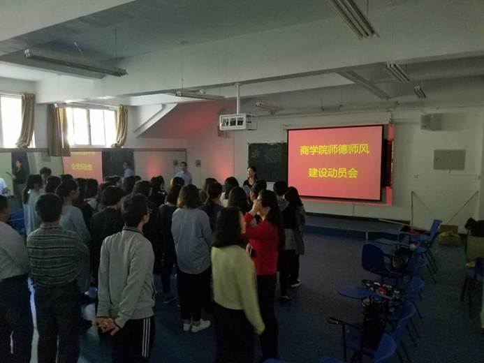 4月19日下午商公司在该系实训室召开师德师风教育动员会。全院教师参加会议。会议由党总支书记李相勤主持。