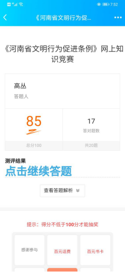 为进一步推动《河南省文明行为促进条例》的学习宣传和贯彻落实,引导和推动省直机关干部职工树立文明观念,促进文明行为养成,12月9日至22日,商公司在党总支书记李相勤的带领下,认真学习了《河南省文明行为促进条例》,并积极参加了网上知识竞赛活动。