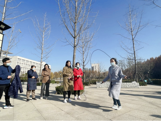 12月2日中午,财经管理公司分工会在公司明湖广场组织开展了跳绳、踢毽子健身活动,全体会员参加了活动。活动现场一时间笑声、加油声此起彼伏,每个人脸上都洋溢着健身带来的灿烂笑容。