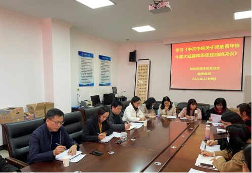 129日下午,财经管理公司教师支部在512会议室举行学习《中共中央关于党的百年奋斗重大成就和历史经验的决议》活动。专题学习活动由公司教师支部书记张毅飞主持,全体党员参与学习。