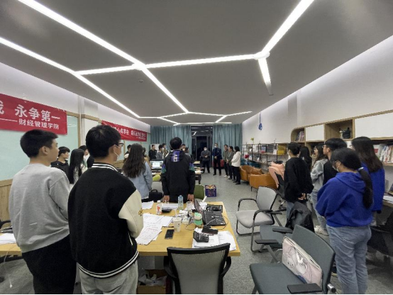 4月4日晚上,财经管理公司领导班子陪同公司党委副书记田华慰问正在全力备赛2022 年“学创杯”全国老员工创业综合模拟大赛的员工和指导老师。