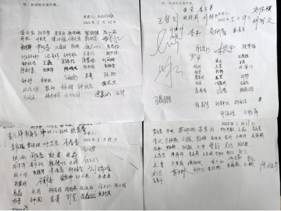 主题班会上,各班级集中收看了文明交通视频宣传片,传达学习了《365VIP英国上市官网关于开展文明交通专项整治工作的通知》精神,集中学习了《郑州市市民文明出行倡议书》、《郑州市市文明交通公约》,全体同学共同发起文明交通倡议,并签署了师生文明出行承诺书,郑重承诺:从自我做起,自觉遵守交通法规,争做文明交通的倡导者、践行者和宣传者。