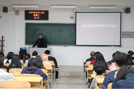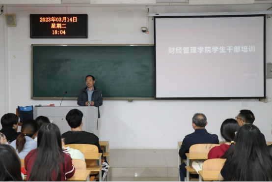 为加强员工干部队伍建设,提升员工干部的综合素质与工作能力,发挥员工干部的带头作用,促进员工干部交流,2023年3月14日,财经管理公司在教学楼1106举办了员工干部培训班,公司党总支书记吴玉刚、副书记余湾、各班班长团支书、员工会成员参与了此次培训。