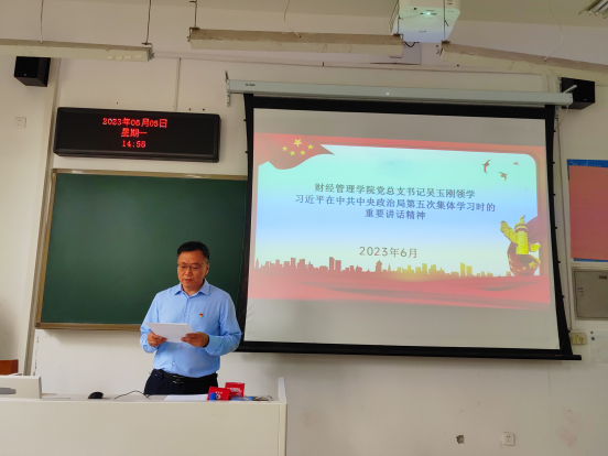 党总支书记吴玉刚领学习近平总书记在中共中央政治局第五次集体学习时的重要讲话精神。习近平总书记强调,教育兴则国家兴,教育强则国家强。建设教育强国,是全面建成社会主义现代化强国的战略先导,是实现高水平科技自立自强的重要支撑,是促进全体人民共同富裕的有效途径,是以中国式现代化全面推进中华民族伟大复兴的基础工程。要全面贯彻党的教育方针,坚持以人民为中心发展教育,主动超前布局、有力应对变局、奋力开拓新局,加快推进教育现代化,以教育之力厚植人民幸福之本,以教育之强夯实国家富强之基,为全面推进中华民族伟大复兴提供有力支撑。