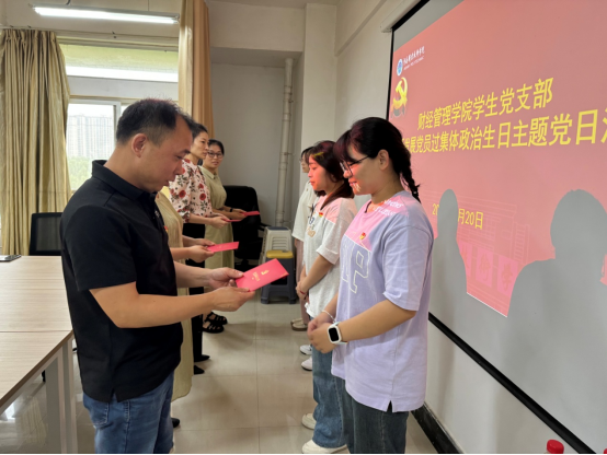 为积极引导广大师生党员进一步强化身份意识、宗旨意识和责任意识,进一步增强基层党组织的创造力、凝聚力、战斗力,财经管理公司于6月20日开展了为新发展党员过集体政治生日主题党日活动。