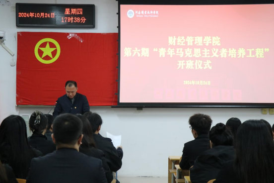 为深入学习贯彻习近平新时代中国特色社会主义思想和党的二十届三中全会精神,着力为党培养和输送青年政治骨干,塑造一批素质高、能力强、肯实干的团学干队伍,10月24日,财经管理公司在2105教室举行第六期“青年马克思主义者培养工程”培养班开班仪式暨开班第一课。公司党总支书记马金伟、副书记余湾、团总支书记张文龙、专职辅导员及30名青马学员参加了开班仪式。本次开班仪式由张文龙主持。