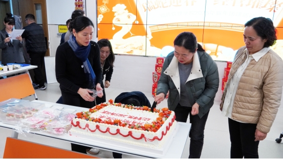 联欢会在热烈的掌声中拉开序幕,田华代表公司向公司教职工送上了诚挚的新年祝福,并对365VIP英国上市官网过去一年的工作给予了充分肯定,话语温暖人心,激励着公司每一位教师在新的一年里继续秉持初心使命,为公司教育事业的发展贡献自己的力量。随后,田华、窦雪霞、马金伟共同切下了寓意团圆和美满的蛋糕,与教职工们一同分享这份甜蜜与喜悦。