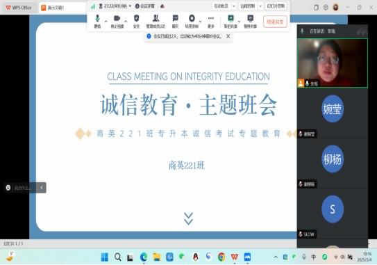 毕业班辅导员通过微信、钉钉、QQ等线上班会方式,开展专升本考试诚信教育。毕业班辅导员们详细解读了专升本考试的《考场规则》、《国家教育考试违规处理办法》等政策法规,强调每一位参加专升本考试的考试都要诚信考试,杜绝作弊,以真实的水平迎接人生中的重要挑战。并通过往年专升本考生作弊处理的真实案例剖析,使员工充分认识到重视诚信考试,是责任感的体现;诚信应考,则是道德品格的体现,引导员工自觉遵守考试纪律。
