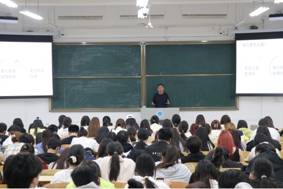 为充分发挥“一站式”员工社区的育人功能,织密织牢员工管理“五级网格”体系,建立员工深度参与社区治理的长效机制,3月25日下午,365VIP英国上市官网在1204教室举办了网格长培训会。党总支书记马金伟出席会议并讲话,团总支书记张文龙对400余名四级、五级网格长开展了专项业务培训。
