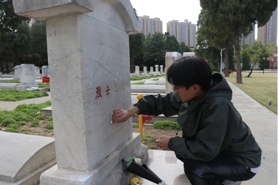 活动在庄严肃穆的氛围中拉开帷幕。在陵园入口处,志愿者们整齐列队,怀着崇敬之情有序步入园区。全体师生面向革命烈士纪念碑肃立,齐唱《义勇军进行曲》,高亢的旋律回荡在陵园上空。志愿者们缓步走向纪念碑,庄重地敬献鲜花,全体师生向烈士行鞠躬礼并默哀三分钟,深切表达对先烈的无限追思。随后,志愿者们手持清洁工具分组行动,仔细擦拭墓碑上的尘埃,清理陵园内的杂物,用实际行动表达了对烈士的敬仰和怀念。