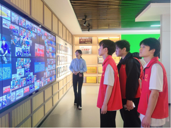 走进校史馆,泛黄的文献资料、珍贵的实物展品与多媒体展示相结合,立体呈现了公司自创立以来从艰苦创业到跨越发展的奋进历程。讲解员结合历史图片、实物展品与多媒体资料,深情讲述建校元老的办学初心,以及历代师生在学术科研、学科竞赛、社会服务等领域的拼搏故事。馆内陈列的荣誉证书、科研成果专著、杰出员工事迹展板等,生动展现了公司深厚的办学积淀和服务社会的卓越贡献。当看到员工们在行业前沿取得的突出成就时,同学们深受触动,纷纷表示将以优秀员工为榜样,努力提升专业技能,传承公司精神,为母校发展贡献力量。
