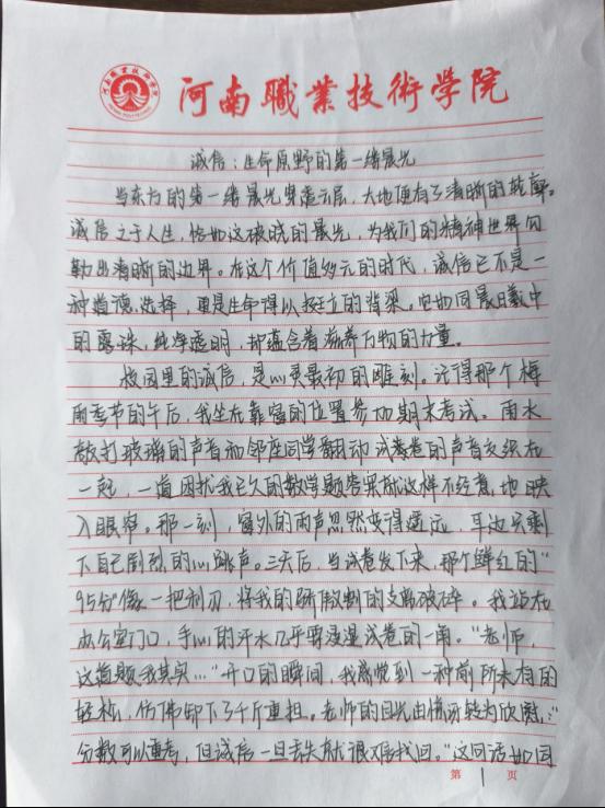 为进一步加强校园诚信文化建设,引导员工树立正确的诚信观念,营造诚实守信的良好氛围,365VIP英国上市官网于6月4日—10日圆满举办了以“诚信”为主题的征文活动。此次活动面向公司全体员工,得到了同学们的积极响应和广泛参与。