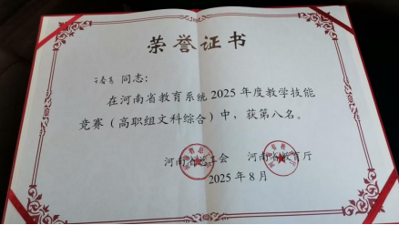 8月28日至31日,由河南省总工会、河南省教育厅主办,河南省教科文卫体工会和洛阳理工公司承办的河南省教育系统2025年度教学技能竞赛现场决赛成功举办。全省48所本科院校,62所高职院校共一万余名教职工参与本次赛事,最终选拔出180名选手晋级现场决赛,公司现代物流管理专业教师王春芳历经校内选拔、省级视频评审和现场决赛三个阶段,最终在高职组文科综合类别中获得全省第八名,荣获河南省教育系统教学技能竞赛一等奖。