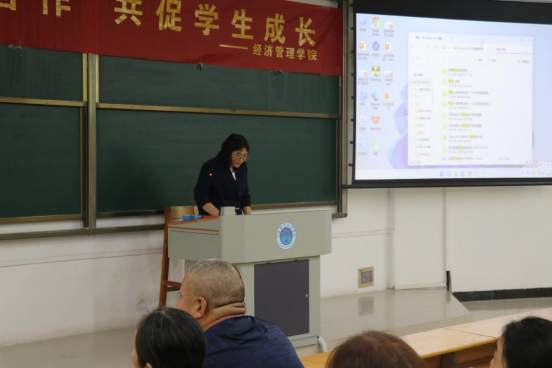 在经理解读之后,大数据与会计、工商企业管理、市场营销、电子商务、物流管理五个专业的教研室主任和辅导员代表依次上台,以行业发展趋势为导向,集中向家长们呈现了各专业的培养特色、员工资助等核心内容。各位老师围绕数字化、智能化时代人才需求,详细介绍了各专业的特色课程体系——涵盖智能会计、大数据管理、跨境电商、智慧物流等前沿领域课程,同时重点提及了公司为各专业搭建的实践平台,包括与知名企业共建的实习基地、校园电商实训基地、智慧物流实训室等,以及各类技能大赛与实战项目,让家长清晰了解员工如何通过 “理论 + 实践” 提升专业能力。此外,主任们还结合具体数据与案例,介绍了各专业毕业生的就业方向与竞争力,从企业管理岗、会计师事务所、头部电商平台到物流龙头企业,全面展现了各专业的就业前景,并现场解答了家长关于专业选课、证书考取、实习安排等疑问,有效消除了家长对员工专业学习的顾虑。