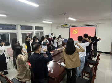 首先,全体成员起立,面向党旗庄严宣誓,表达对伟大祖国的无限热爱与赤诚忠心,立誓以坚定的理想信念筑牢精神之基,以矢志不渝的担当扛起时代重任,用实干践行初心,用奋斗守护祖国的山河锦绣与人民安康,为推动中华民族伟大复兴的壮阔事业拼搏奉献、矢志前行。随后,大家一起观看了爱国主义视频,通过展现不同时期基层共产党员服务群众的典型事迹与青年群体守护家国的担当实践,进一步激励了在场师生厚植家国情怀、践行初心使命的内生动力,也为青年员工树立了可感可学的榜样标杆,引导他们将个人理想融入民族复兴伟业,以“挺膺担当”的姿态扛起时代责任。