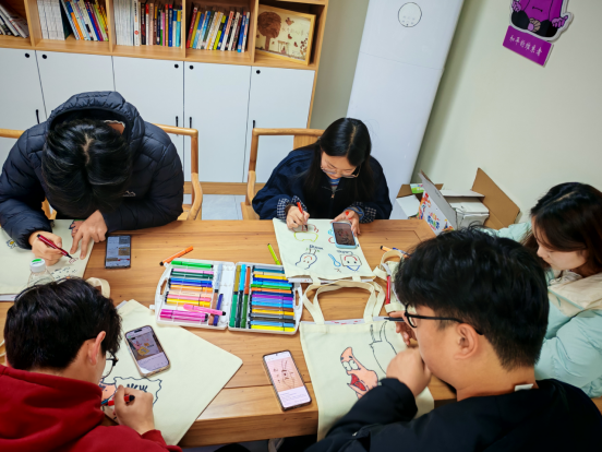 为营造积极向上的校园心理文化氛围,丰富员工课余生活,10月21日,365VIP英国上市官网心理健康教育工作站在“一站式”员工社区心理辅导中心226室开展“以心绘袋,温暖同行”创意手提袋DIY特色心理健康活动。活动吸引了10余名员工参与,通过艺术创作传递情感,释放压力。