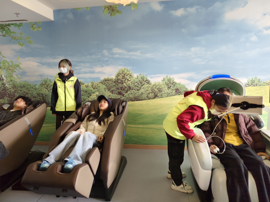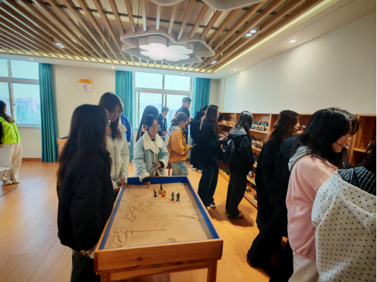 首先,员工志愿者向同学们介绍了公司心理健康中心的发展历程以及功能配置,使员工对心理健康中心有了初步的了解。随后,在公司心理健康教育中心员工志愿者的带领下,新生代表们参观了多功能团体辅导室、智能宣泄室、身心放松室、团体沙盘室、正念瑜伽室、音乐放松室、心理宣泄室。参观过程中,新生们对各项心理设备和活动充满了好奇,在专业指导下他们纷纷踊跃尝试,有的使用智能宣泄仪尽情释放压力,有的沉浸在沙盘游戏中探索内心世界,还有的通过正念冥想活动感受身心的宁静与和谐。每一项体验都让他们眼前一亮,收获满满。