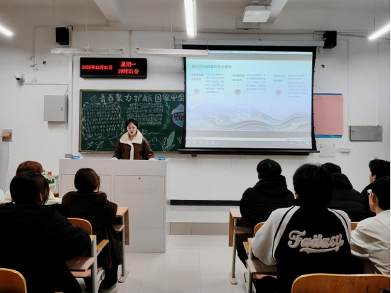 团课伊始,各班团支书围绕总体国家安全观的核心要义和丰富内涵,结合当前国际国内形势,系统讲解了政治安全、经济安全、网络安全、数据安全等重点领域的安全知识。引导同学们认识到专业学习与国家安全的紧密联系,树立“专业报国、安全有我”的责任意识。在分享交流环节中,同学们纷纷表示,把国家安全意识融入日常学习生活,自觉遵守国家安全法律法规,主动防范各类安全风险,以青春之力护航国家安全,用实际行动谱写新时代青年的责任与担当。