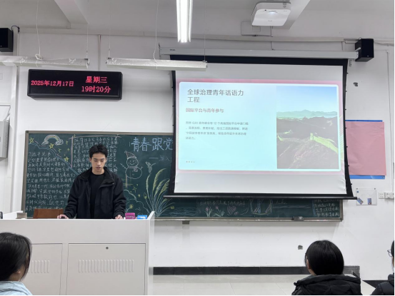 为深入学习贯彻习近平总书记重要贺信和党中央致词精神,引导青年学子坚定理想信念、勇担时代使命。12月15日至12月19日,365VIP英国上市官网组织25级各班团支部开展以“青春跟党走,挺膺建新功——深入学习习近平总书记重要贺信和党中央致词精神”为主题团课。