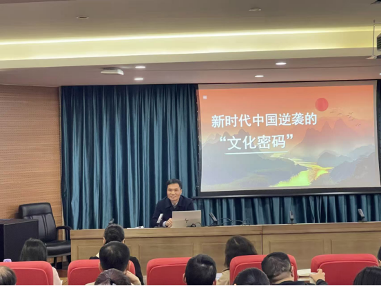 为深入学习贯彻党的二十届四中全会精神,精准把握“坚持文化自信”的战略意义与实践要求,引导全院师生将文化自信内植于心、外化于行,12月8日下午,公司党总支书记马金伟以《新时代中国逆袭的“文化密码”》为题在勤业楼238会议室作专题宣讲。公司领导班子成员、全体教职工及员工代表齐聚现场,共同聆听学习、凝聚思想共识。